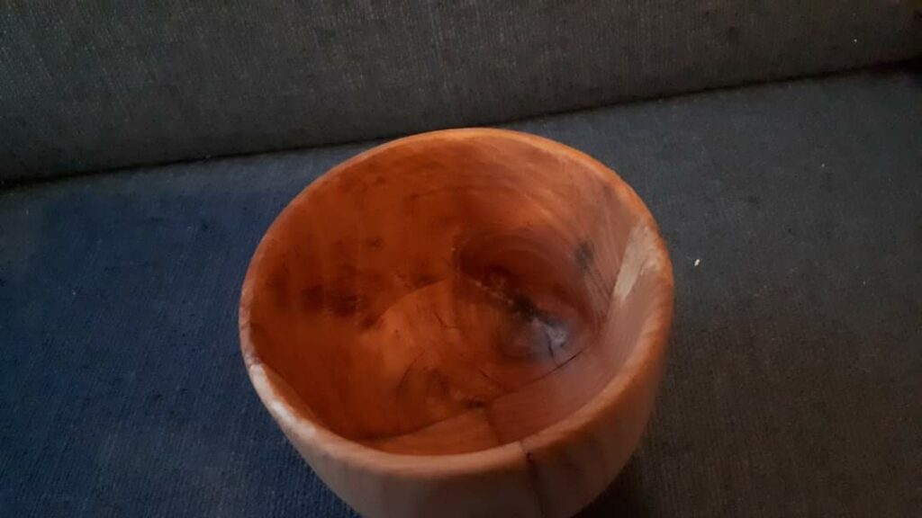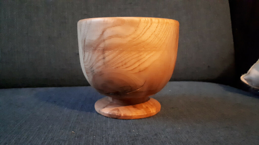 Kom of bekertje op voet. Beuken. 10 cm. Afgewerkt met deense olie.