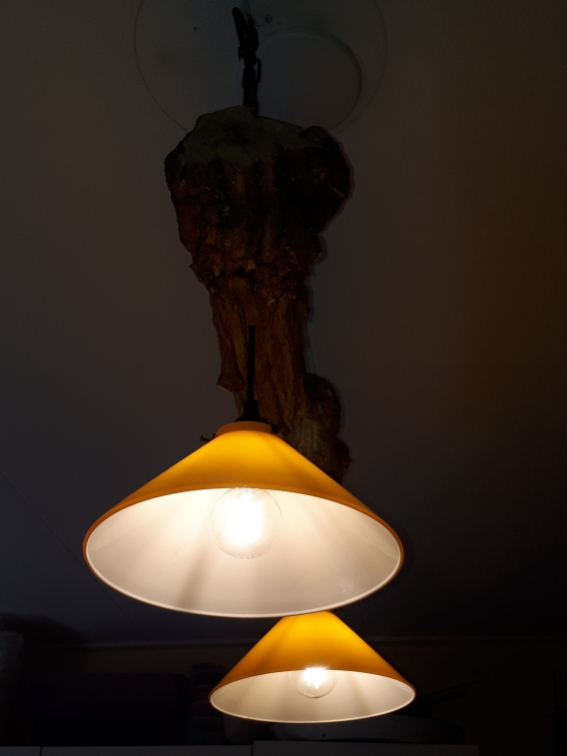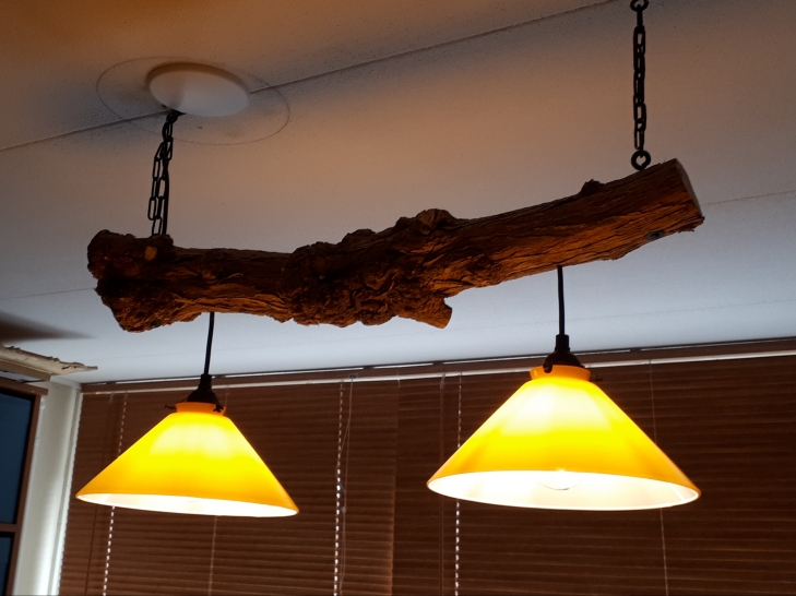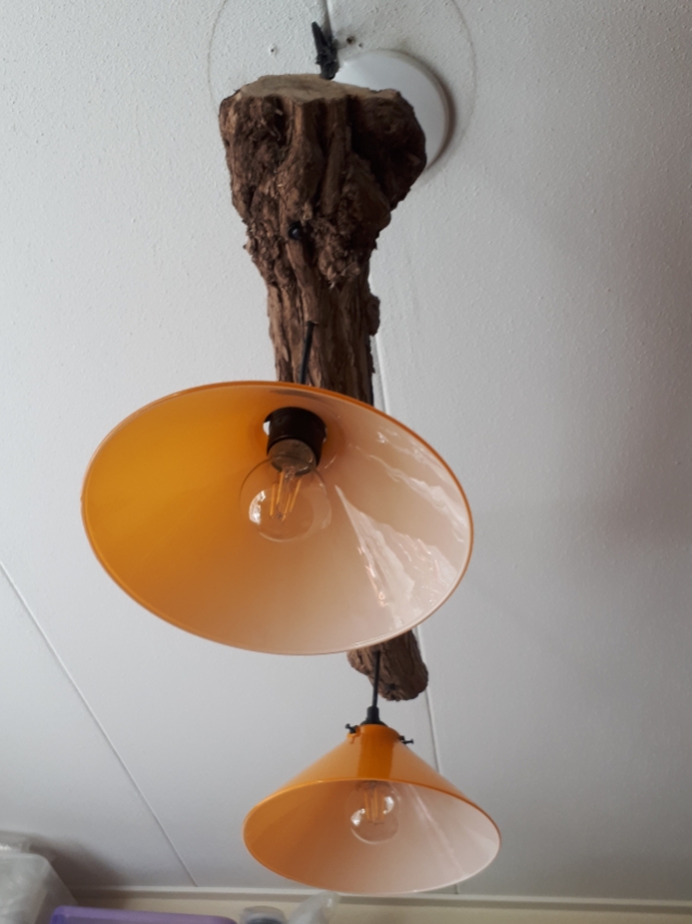 De opdrachtgever heeft de lampen geleverd en gevraagd om er een boomstamlamp van te maken.