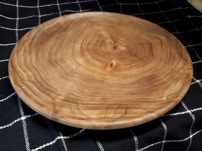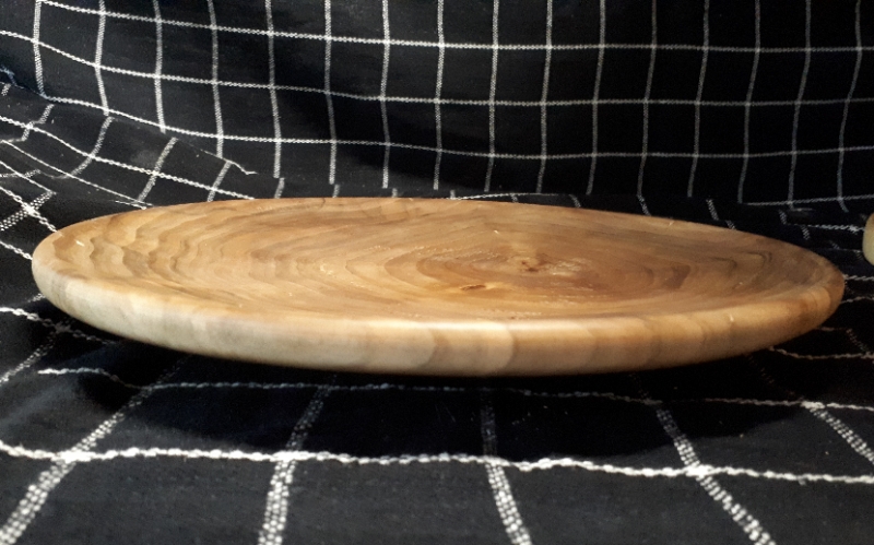 Eikenhouten bord van 30 cm doorsnede. Behandeld met druivenpit olie en was.