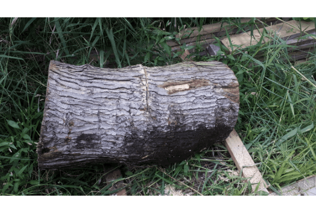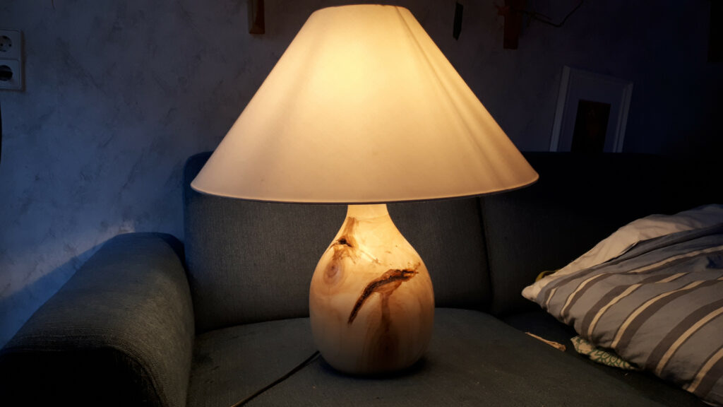 Met een scherp stuk ijzer insteken op een met hoge snelheid rond draaiend onregelmatig gevormd stuk hout…..