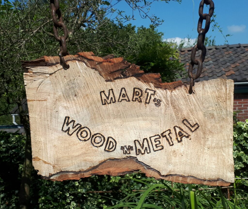 Uithang borden, decoratief, en functioneel. Gemaakt van schijven massief hout, of naar wens gekozen plaat materiaal zoals multiplex of grenen meubelpaneel.