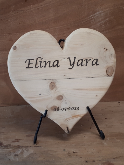 - En…. Naar wens kan ik namen en/of tekeningen er op aanbrengen dmv pyrografie (Branden)